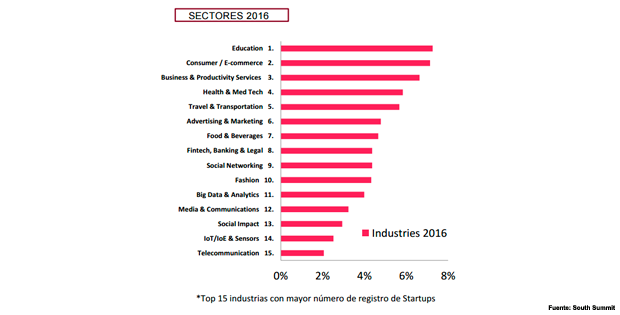 Si ponemos la vista en los sectores, la educación, seguida del ecomerce y los servicios para empresas lideran el ranking de ocupaciones de las starups.