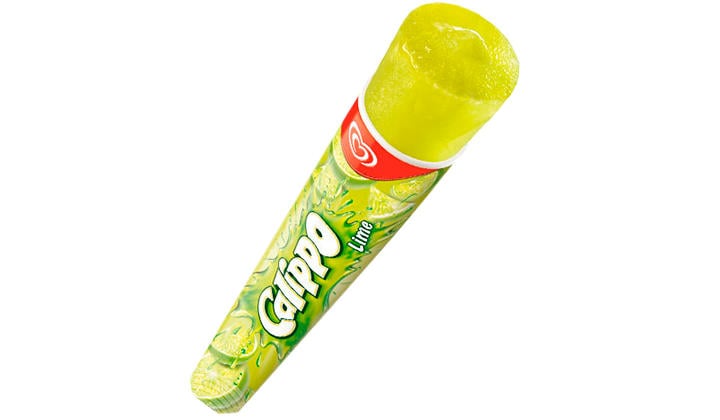 Un año más tarde, llegó a la carta Calippo por la necesidad de tener que reinventarse ante el auge de las bebidas carbónicas, las cuales llenaban el estómago y hacía que se consumieran menos helados. Un equipo especializado de ingenieros, marketing y producción inventó este polo tan peculiar: era el primero que no tenía palo. Este envase se diseñó así para asemejarse a las latas de refrescos.
