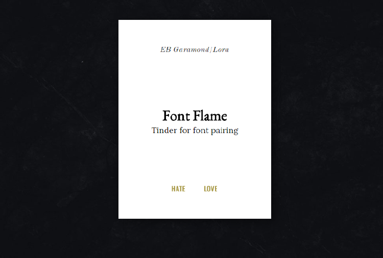 Esta opción se muestra como el Tinder de las tipografías. Font Flame nos ofrece una muestra de fuentes y podemos decir si nos gusta o si la odiamos.